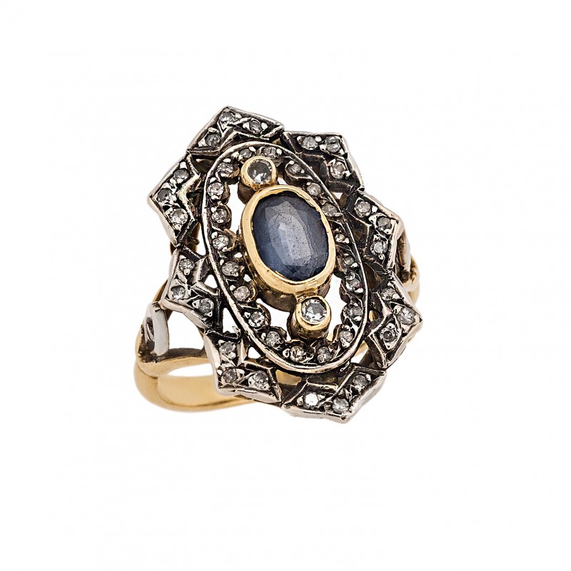 Δαχτυλίδι χρυσό 18καράτια με Ζαφείρι και Διαμάντια 0.50ct