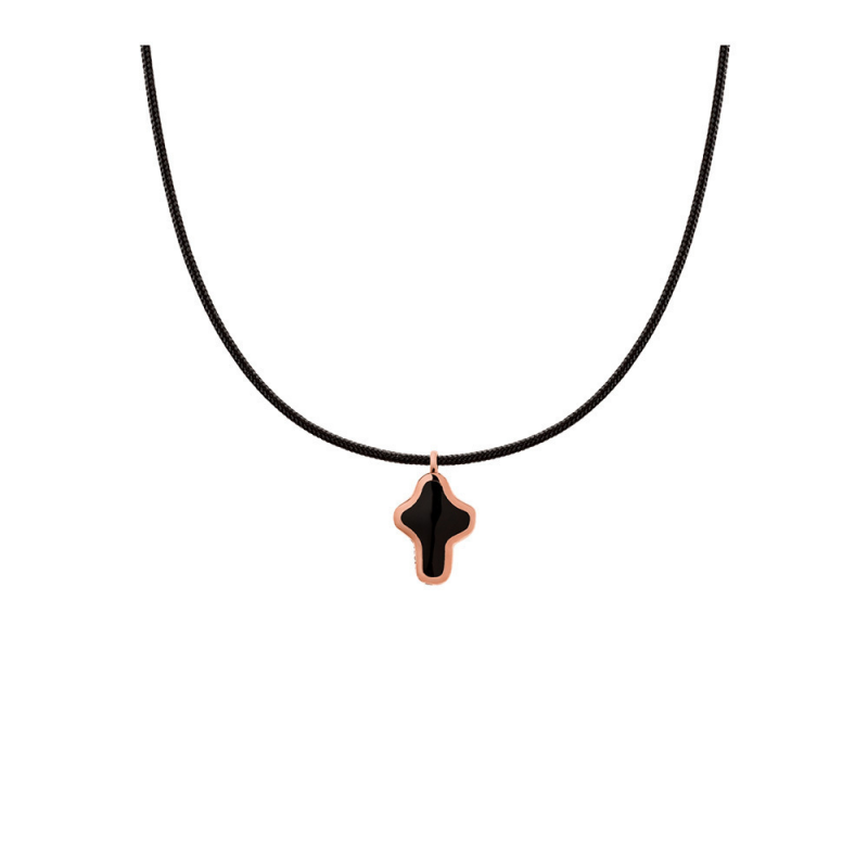 9 καράτια ροζ χρυσό ή λευκόχρυσο κρεμαστό με essenza, σε μαύρο κορδόνι. Φτιαγμένο στην Ιταλία